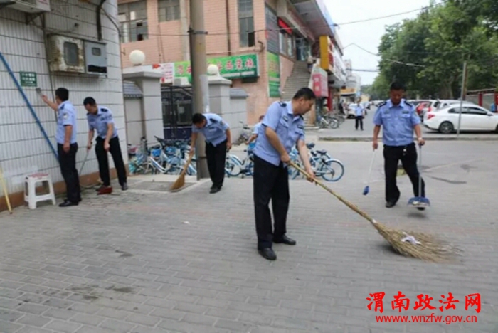 渭南政法网(临渭分局讯)卫生清洁、环境优美是我们梦寐以求的美丽家园,卫生创建日,公安临渭分局东风派出所全体民警对包联路段进行了彻底清扫,为全面创建卫生文明城市做出自己应有的贡献。