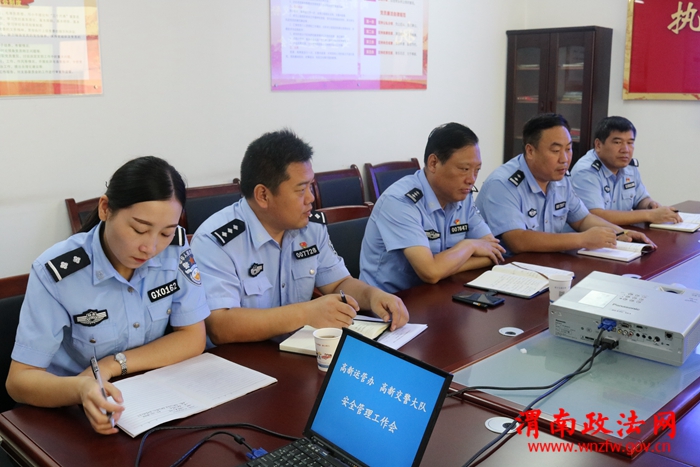 渭南政法网(高新交警讯)8月23日,高新交警大队联合高新区运管办召开安全管理工作会,会议由大队长王晓文主持,高新区运管办4名工作人员和大队相关科室负责人参加此次会议。会议通报了辖区重点管理车辆检审验和交通违法行为情况,大队长王晓文与高新区运管办就重点管控车辆的安全管理问题进行了交流。