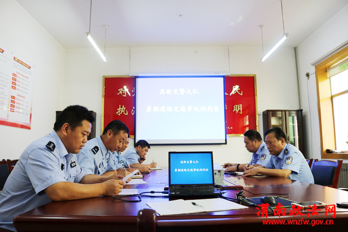 渭南政法网(高新交警讯)8月23日,高新交警大队召开暑期道路交通事故研判会,会议由大队长王晓文主持,各所、室、中队负责人参加此次会议。会议对暑期道路交通事故常规特点,交通事故中主要违法行为,发生的时间、天气情况,事故责任人的年龄等事故原因进行分析。与会的各科室结合本部门职责进行认真研判,提出对策建议。