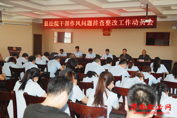 渭南政法网(通讯员 马力驰)为扎实做好干部作风问题排查整改工作,持之以恒纠“四风”转作风,推动法院各项工作干在实处、走在前列。近日,合阳法院在该院六楼会议室召开干部作风问题排查整改工作动员会,深入贯彻落实习总书记关于作风建设重要指示批示精神和全县干部作风问题排查整改工作推进落实会精神,安排部署本院干部作风问题排查整改工作。