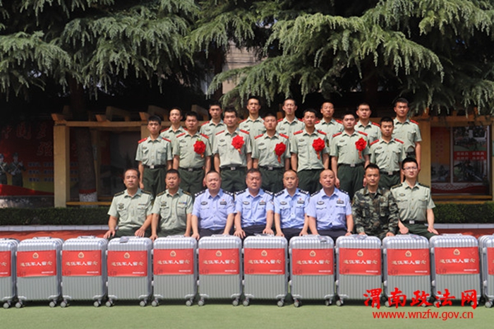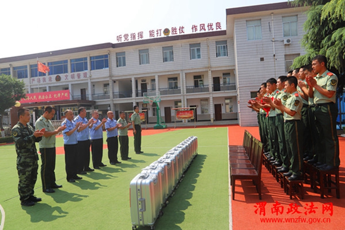 渭南政法网( 通讯员 赵泽华)又到一年退伍季,依依惜别情意浓。8月29日上午,在武警中队退伍老兵光荣返乡之际,华州区公安局党委副书记、政委秦卫宏,局党委委员、纪委书记雷晓锋,党委委员、政工监督室主任龙延,警务保障室主任蒋明涛一行来到武警中队欢送即将退伍的老兵,并为他们送上慰问品。