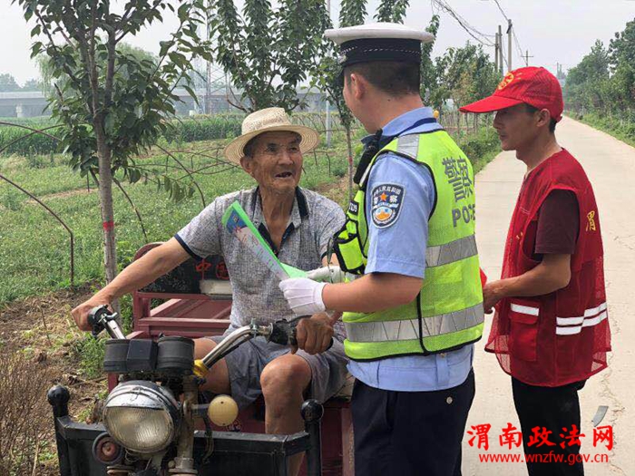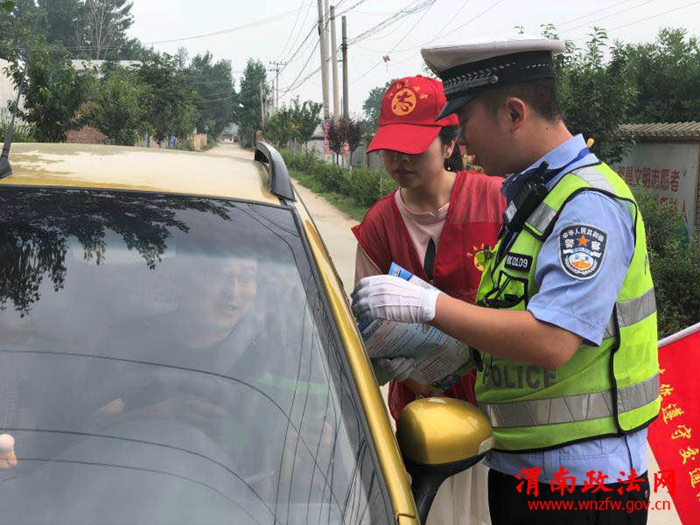渭南政法网(华州公安讯)为加大农村交通安全宣传力度,进一步推进“查违法除隐患、降事故保安全”宣传工作,切实强化农村道路交通安全管理,9月11日一大早,华州区公安局交通管理大队城区中队民警走进辖区华州镇先农村开展交通安全宣传活动,将交通安全法律法规和交通安全知识送进了辖区乡村。