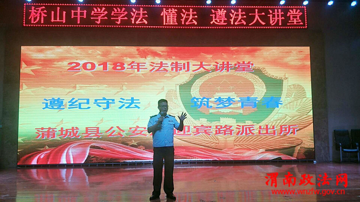 蒲城县公安局各派出所结合辖区实际情况,深入中小学校开展“法制进校第一课”活动,针对辖区治安情况、校园治安情况及在校师生特点,讲解法律法规及安全防范常识,不断增强师生的法律观念和安全意识,提高师生的自防自卫能力,其中迎宾路派出所以“遵纪守法 筑梦青春”为主题,结合典型案例、以案说法的形式教育全体学生做一名“学法、懂法、遵法、用法”的好学生;洛滨派出所则通过一些情景的设定给同学们提出了一些与生活密切相关的安全建议,使学生安全防范意识大幅度提高;孙镇派出所印发了安全宣传页,图文并茂有针对性地讲解了日常安全知识,全体学生看后受益匪浅。
