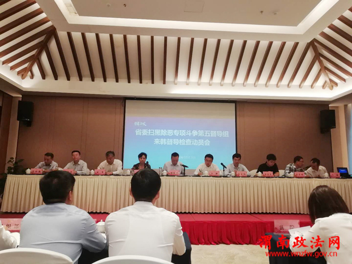 渭南政法网(通讯员 张锦霞)9月12日,韩城市召开了省委扫黑除恶专项斗争第五督导组来韩督导检查动员会,市长杜鹏主持会议。会上,第五督导组组长胡跃宏就督导职责、工作要求、工作任务等做了详细的安排部署,并代表督导组表态:督导组一行将通过走访群众、座谈等方式摸清实情、严明纪律、掌握实情,客观真实的发现问题并如实汇报省委。市长杜鹏强调,针对此次省委督导,我们一要无缝衔接、做好督导配合工作;二要结合韩城实际、掀起强大攻势;三要切实抓好整顿,立行立改。