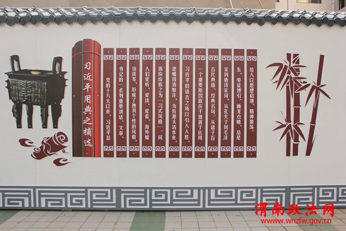 渭南政法网(通讯员 惠国强 李园)为进一步实践“文化兴院、文化立院”的法院文化建设理念和发展战略,发挥文化这个软实力作用,蒲城法院结合法院工作实际,积极打造富有特色的百米文化墙,凝聚和传递社会正能量。