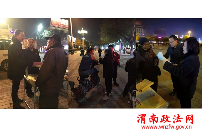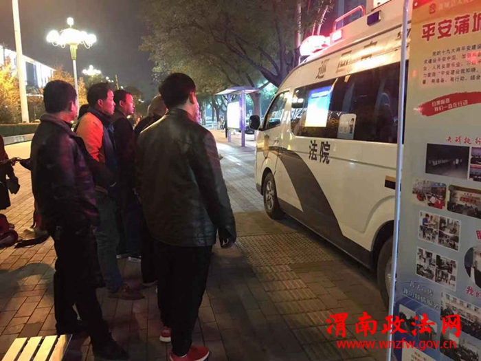 渭南政法网(通讯员 艾洁)为持续开展富有蒲城法院特色的平安建设模式,蒲城法院民一庭的法官干警们利用下班后晚间的空余时间,来到人员密集的县中心广场,开展平安法治宣传活动,并为群众提供法律咨询。