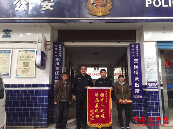 渭南政法网(临渭分局讯)平安建设工作开展以来,公安临渭分局东风拍所始终以提升群众安全感、满意度为目标,想群众所想,急群众所急,扎扎实实为群众服务。近日,东风派出所通过多途径帮助群众找到负气出走的怀孕妻子,获赠锦旗。