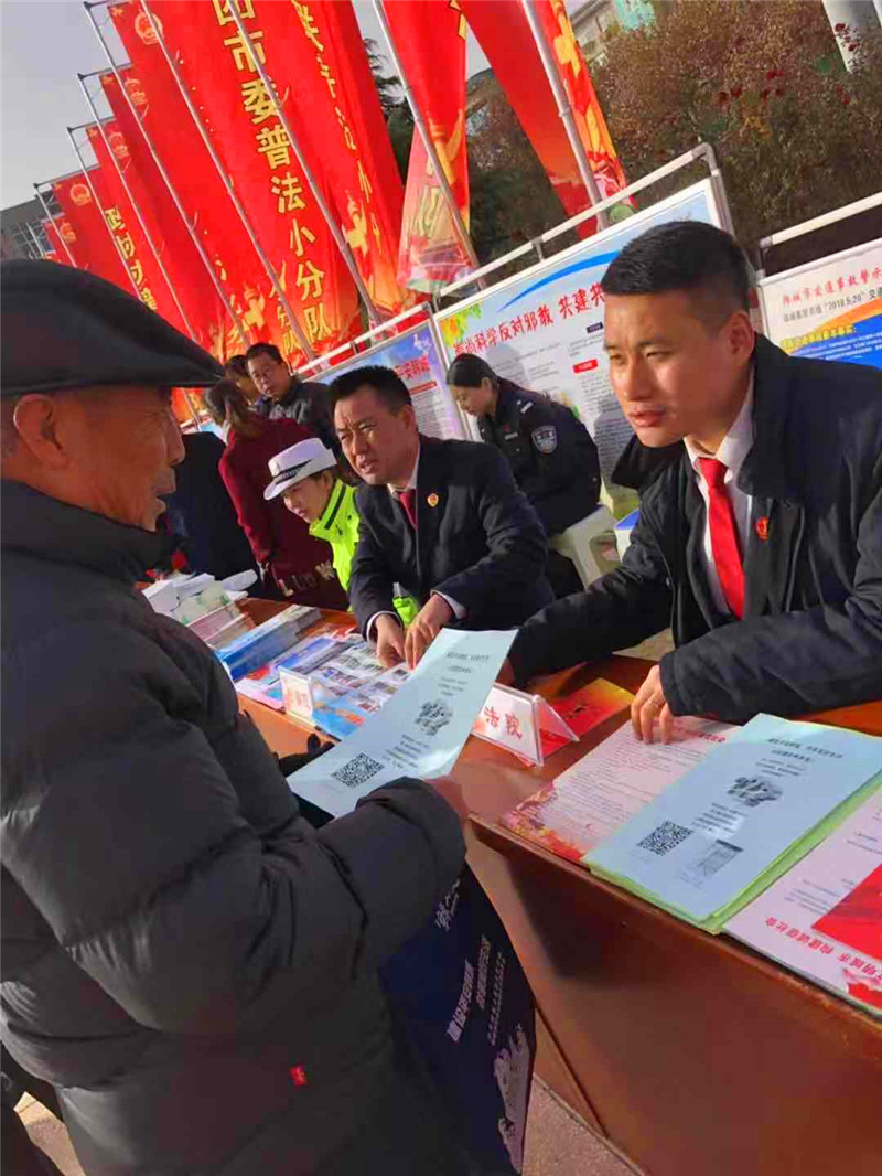 渭南政法网(通讯员 周璇月)12月4日是我国第五个“国家宪法日”,今年也是新宪法修正案颁布实施后的第一个宪法宣传周,为了深入推进法治宣传教育,树立宪法权威,提升群众的法治观念、法治意识,提高依法办事能力,形成学法、用法、守法的良好氛围,韩城市人民法院按照全市统一部署, 积极围绕“弘扬宪法精神 建设法治韩城”的主题,组织普法小分队在太史广场进行了集中普法宣传活动,营造出浓厚的宪法宣传氛围。