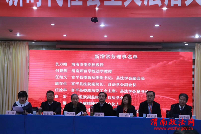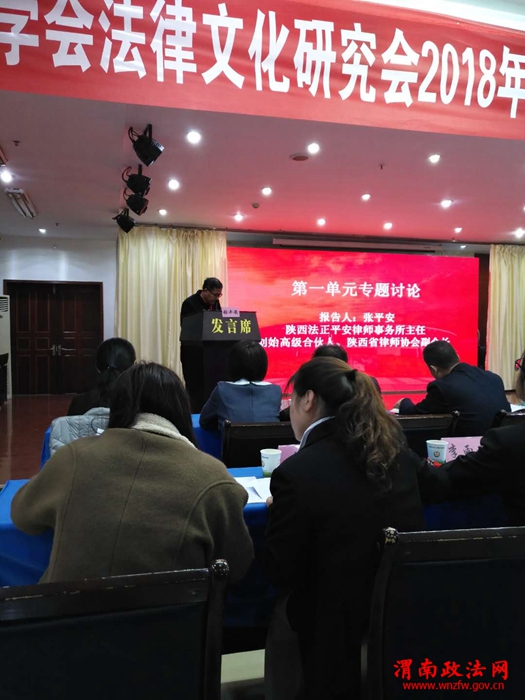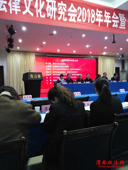 渭南政法网(通讯员 任拴牢)2018年12月2日,由陕西省法学会法律文化研究会主办,陕西师范大学哲学与政府管理学院、渭南市法学会、富平县法学会承办的陕西省法学会法律文化研究会2018年年会暨“新时代社会主义法治文化建设与红色法治文化传承”学术研讨会在富平召开。陕西省法学会党组书记、副会长杨建军、渭南市委政法委纪检组长姚宏斌、富平县委常委、政法委书记、县法学会会长杜银虎出席会议并分别致辞,陕西省法学会法律文化研究会会长、陕西师范大学哲学与政府管理学院副院长、教授、博士生导师王蓓到会作总结讲话,来自陕西师范大学、西北政法大学、西安交通大学、西北工业大学、武警工程大学、西安石油学院渭南师院等高等院校学者以及法学会代表、律师代表80余人参加了会议。会议开幕式由陕西省法学会法律文化研究会秘书长、陕西师范大学哲学与政府管理学院法学系副主任、副教授、硕士生导师高学强主持。