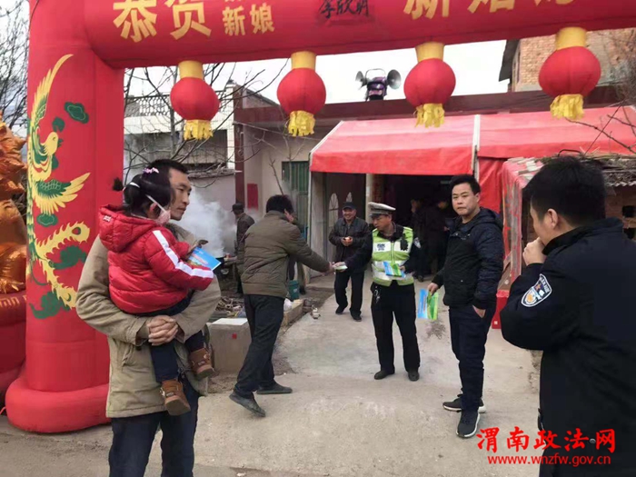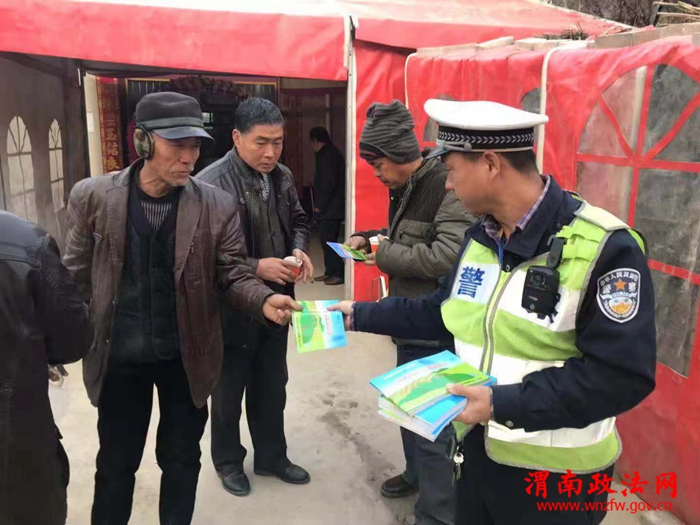 渭南政法网(通讯员 蒋欢 陈润社)为有效预防和减少冬季辖区道路交通事故的发生,12月9日,富平交警大队西禹中队结合文明交通宣传“七进”活动,组织民警深入辖区村民婚礼现场,开展交安宣传。