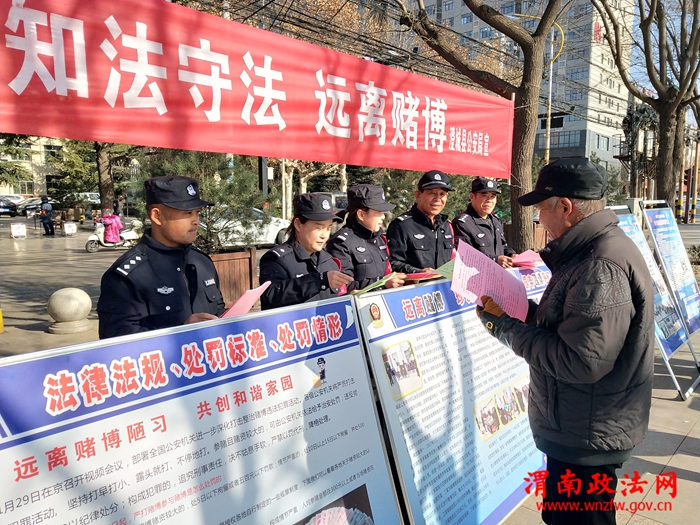 渭南政法网(澄城公安讯)省市《关于开展“知法守法、远离赌博”全省治安系统禁赌宣传月活动的通知》以来,澄城县公安局进一步加强思想认识、积极对待、主动作为,同时结合当前该县实际,切实完善治安管理措施,强化治安管理工作力度,着力以解决危害民生的突出治安问题为重点,三项措施力促禁赌工作取得实效。