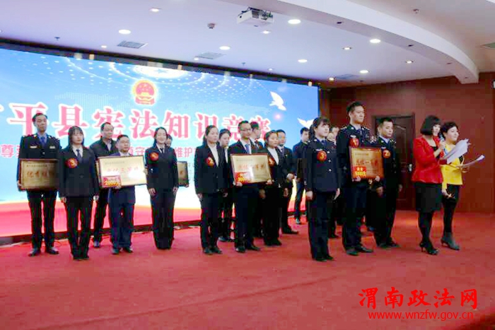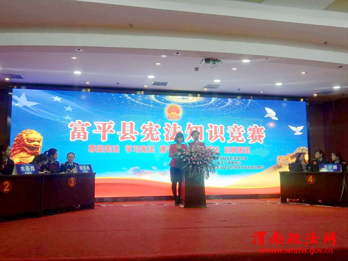 为全面贯彻落实党的十九大精神和习近平新时代中国特色社会主义思想,深入开展宪法学习宣传活动,12月20日,由中共富平县委依法治县工作领导小组、富平广播电视台等单位组织的“富平县宪法知识竞赛”在富平县天成园会议大厅隆重举行,来自县公安局、县法院、县审计局、县税务局、县纪委及城关街道6个单位的代表进行了决赛,经过激烈角逐,富平县公安局代表队以总分300分的成绩夺得桂冠。