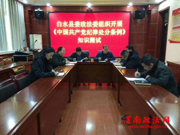 渭南政法网(通讯员 张李娜)为进一步推动白水县委政法委全面从严治党工作,检验前期学习成效,达到“以考督学、以考促学”的目的,12月21日,白水县委政法委组织机关党员干部在政法委六楼会议室开展了《中国共产党纪律处分条例》知识测试。