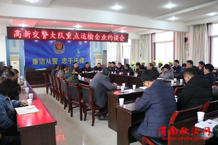 为进一步强化重点运输企业源头管理,推进“大排查大整治”行动,确保辖区道路安全畅通,12月24日,高新交警大队召开重点运输企业约谈会,会议由副大队长刘全红主持,辖区各重点管控单位法人、车辆安全管理人参加此次会议。