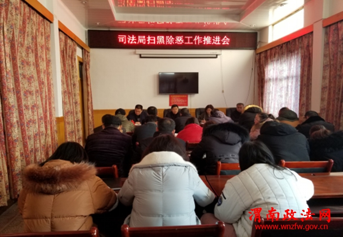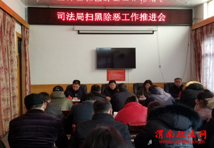 渭南政法网(通讯员 王紫薇)12月26日,潼关县司法局召开了扫黑除恶专项工作推进会,机关全体干警、司法所长、律师、法律服务工作者参加了此次会议,会议由司法局党组副书记王黎波主持。