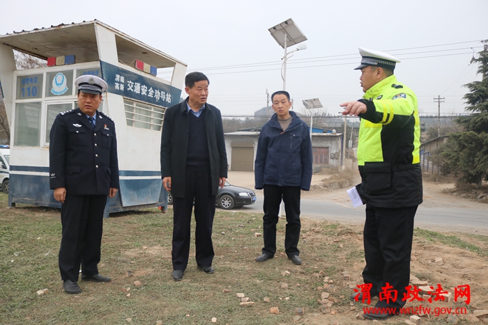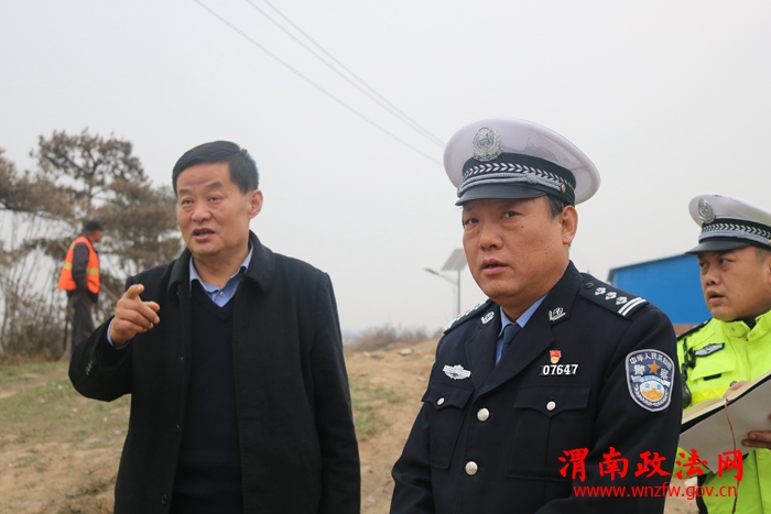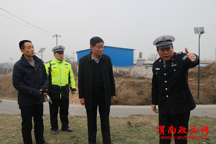 近期,辖区渭化专用生产路与西潼路丁字引发多起交通事故,为消除事故隐患,全力预防重特大事故的发生,12月25日下午,高新区管委会党工委委员、公安高新分局局长赵文昌、高新区安监局副局长王宁在高新交警大队大队长王晓文、事故预防处理中队长姬治国、交通秩序管理中队长徐岗峰的陪同下,深入辖区渭化煤渣厂专线与西潼路丁字对事故隐患路段整改情况进行调研。赵局长一行现场查看了路口交通状况及安全设施设置情况,听取了安监局副局长王宁及大队长王晓文隐患整改情况的汇报,进一步详细研究了整改措施。