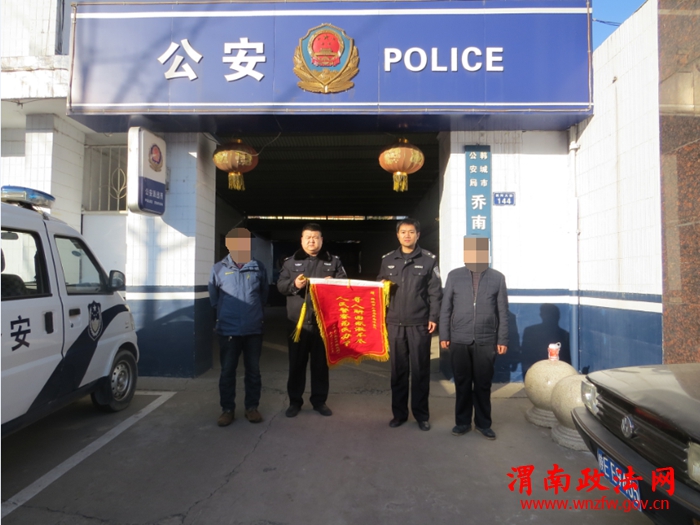 渭南政法网(通讯员 卫媛媛)12月28日,群众赵某来到乔南派出所,向该所民警赠送一面写有“人民警察为民办事 寻人解困感激不尽”字样的锦旗,对乔南派出所民警全心全意为民服务的精神风尚表示真诚的感谢。