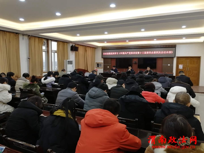 渭南政法网(通讯员 张亚梅)2019年1月15日,白水法院召开专题会议,传达学习《中国共产党陕西省第十三届委员会第四次全体会议》精神,会议由白水法院党组副书记奚建峰主持。
