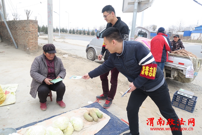 为扎实开展好今冬明春禁毒宣传教育工作,加大禁毒宣传教育力度,巩固禁毒人民战争工作成效,增强广大人民群众识毒、拒毒、防毒意识,2019年1月28日,华州区禁毒办联合禁毒志愿者积极开展今冬明春禁毒宣传“六进”活动。