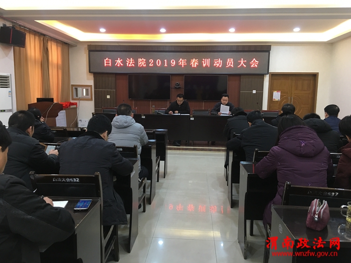 渭南政法网(通讯员 巨亚楠)2月11日上午,春节假期收假第一天,白水法院召开春训动员大会,安排部署白水法院春训工作。春训动员大会由白水法院党组书记、院长骆元平主持。