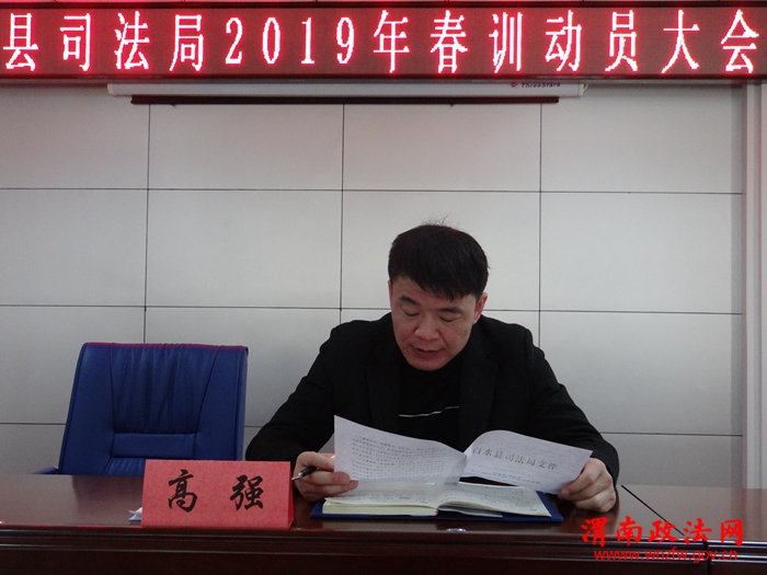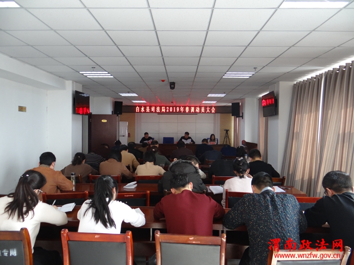 渭南政法网(白水县司法局讯)2月11日,白水县司法局召开了“讲政治、敢担当、改作风、促发展”为主题的春训工作动员大会,全县司法行政系统干部职工和下属事业单位工作人员参加了会议。