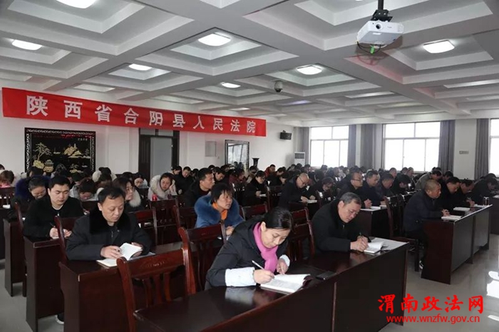合阳法院党组副书记、副院长宁卫中主持会议,全体班子成员、法官干警参加会议。