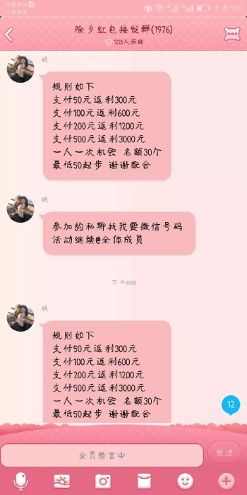 2月4日晚上9点多,受害人小周(女,14岁)在溧阳的家中玩手机,在QQ空间里看到有人发了一个二维码,称“抖音网红顾乐发除夕红包”,小周扫码进群后,里面有一个叫“网红顾乐”的人说除夕福利规则:选项1:100返1000;选项3:300返3000……他还发了一段返钱给别人的视频。小周抱着试试看的心态加对方微信,对方信誓旦旦说活动保证是真的,还说100元返1000的活动已经结束了,让小周转500元给他,小周就相信了,用母亲的手机微信转账给对方500元,后来对方又说有别人在小周前面转账了,小周参加不了这个活动,又让她继续转账参加其他活动。小周听信对方继续转账两笔700元、一笔3200元,后来对方又说按照他说的操作转账,转账金额9999,下面备注支付0.01元就可以拿返利,小周继续用母亲的手机按照对方的提示扫两次二维码,后发现自己QQ、微信均被拉黑。