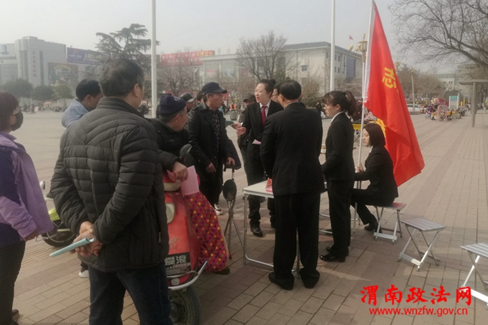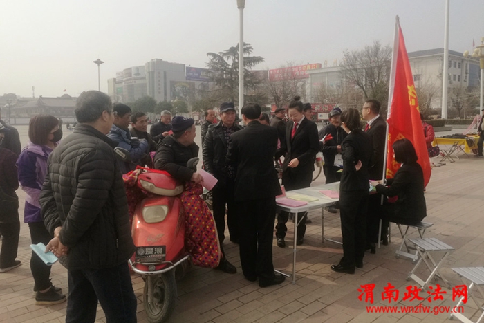 在活动现场,志愿者们主动热情地向过路群众发放包括诉讼风险告知书、买卖合同纠纷案件诉讼指引、扫黑除恶等内容的宣传资料,向路人认真细致地讲解法律知识,对群众提出的相关法律问题以通俗易懂的语言进行了现场解答;巡回法庭车上播放着蒲城法院普法宣传影像,图文并茂地让群众了解法院、了解法律。