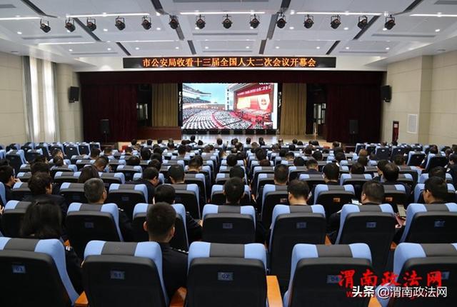 渭南政法网(市公安局讯)3月5日上午9时,第十三届全国人民代表大会第二次会议在北京隆重开幕。市公安局在家班子成员、各部门主要负责同志、机关全体民警共300余人集体收看了开幕会盛况和李克强总理作的《政府工作报告》,共同感受团结、和谐、奋进的时代脉搏。