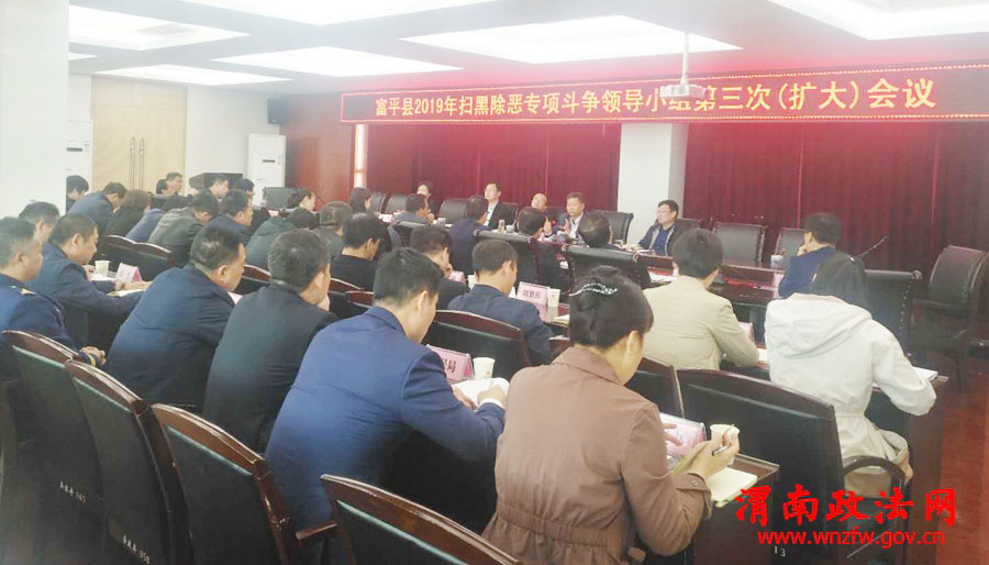 渭南政法网(通讯员 刘寅龙 张宝亭)3月29日,富平县召开2019年扫黑除恶专项斗争第三次(扩大)会议,县扫黑除恶领导小组副组长及各成员单位主要负责人、各镇(街道)党(工)委书记参加了会议,会议由县委常委、常务副县长景军荣主持。