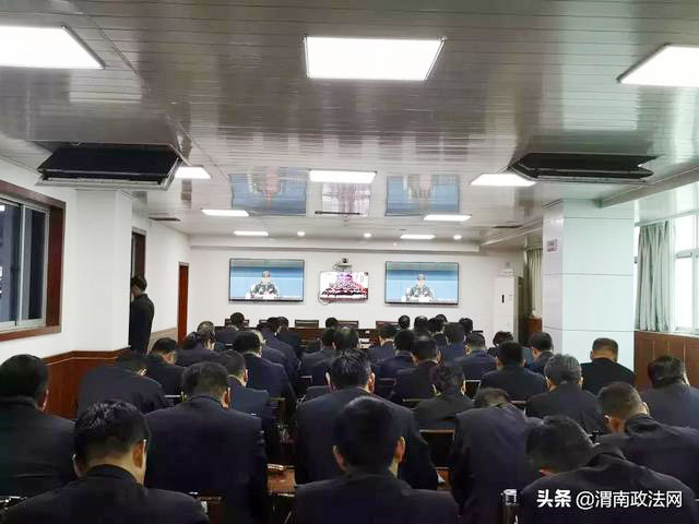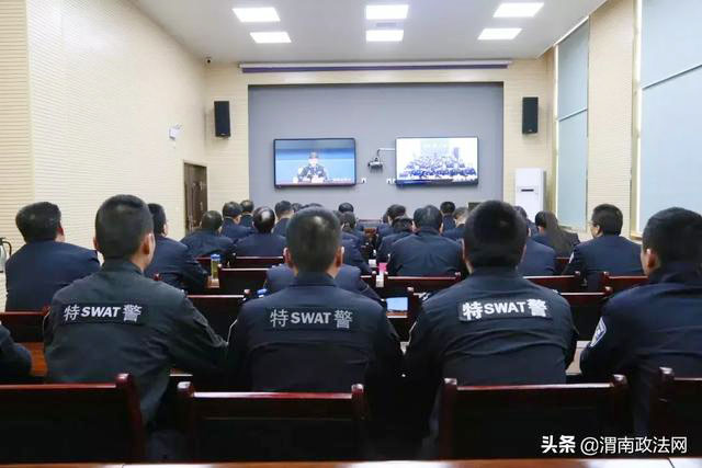 会议由省公安厅党委委员、政治部主任公培明主持。渭南市公安局在家局党委成员、中层领导干部、民警辅警代表50余人在市局机关聆听宣讲。全市各县级公安机关民警在分会场参会。