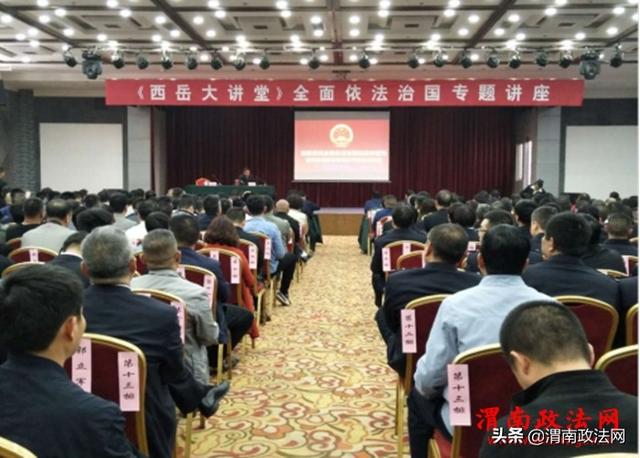 渭南政法网(通讯员 郭晓军)为深入学习贯彻习近平总书记全面依法治国新理念新思想新战略,增强全市党员领导干部依法执政、依法行政意识,提高依法治市水平,4月29日下午,华阴市在华山客栈举办了《西岳大讲堂》全面依法治国专题讲座。邀请了陕西省委普法办常务副主任,省司法厅党组成员、副厅长师建平为全市市级领导,各镇、街道办、各部门主要负责人、分管法治工作领导及政法系统中层以上干部共350余人进行了讲座。市委常委、市委政法委书记权渭阳主持了会议。