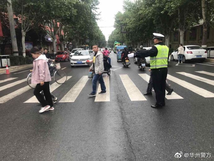 5月7日,华州公安交警大队城区中队民警定点、定人、定责在辖区学校门口及周边路段进行指挥、管控、疏导。