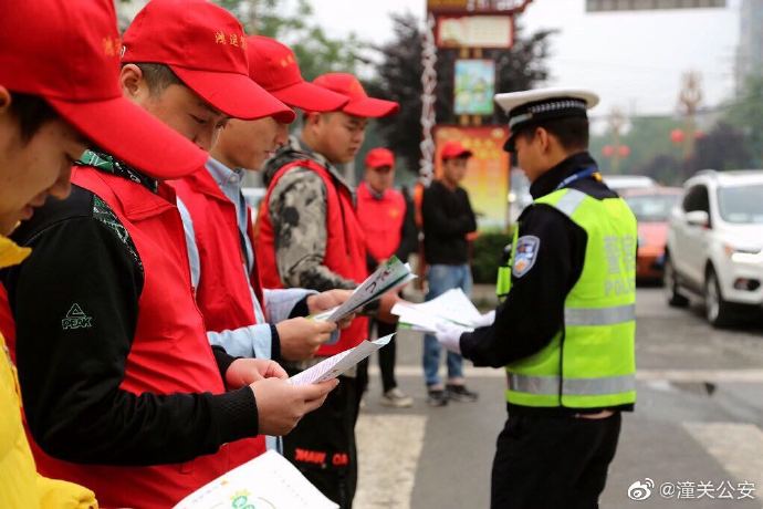 5月8日,潼关公安交警大队组织鸿运驾校20余名学员开展“周三文明劝导活动”。