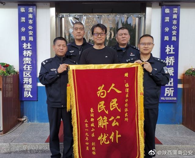 近日,一老人从兰州来渭南探望女儿,饭后散步时不慎迷路,渭南临渭公安杜桥所民警听很快便联系到了老人的女儿。家人送来锦旗以表感谢。