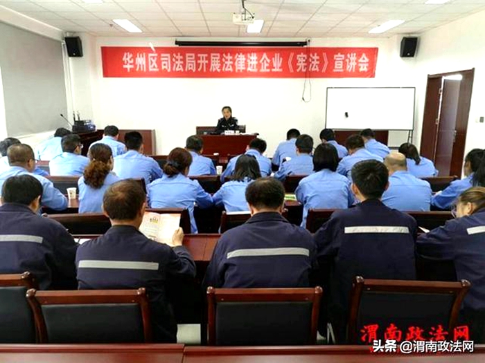 5月10日上午,渭南市华州区司法局在陕煤技术研究院华州分公司开展律师志愿者《宪法》宣讲会。