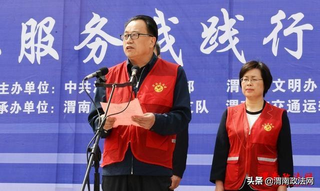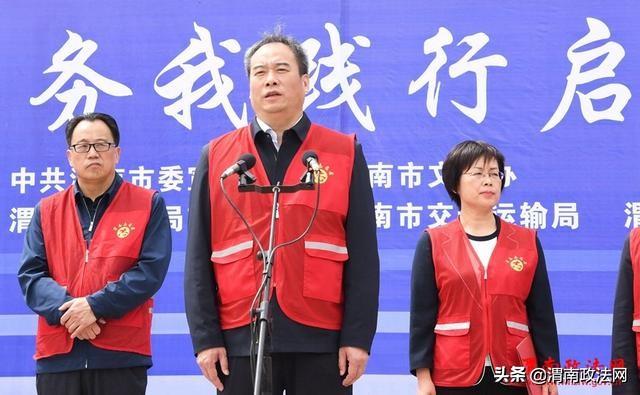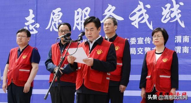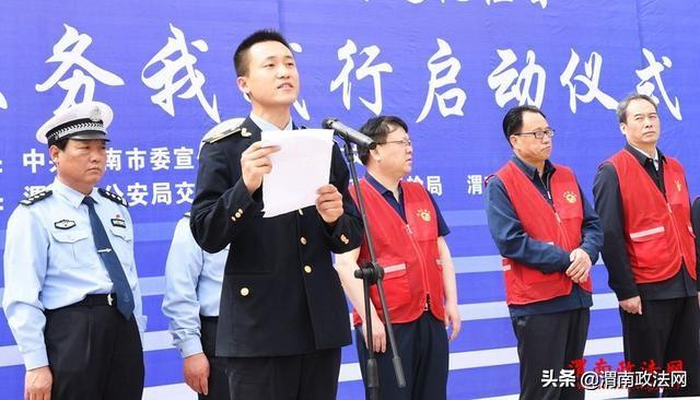 渭南市交通运输局党组成员、纪委书记张伟民宣读了《渭南市周三文明交通礼让日志愿服务活动实施方案》。记者 杨春波 摄