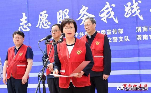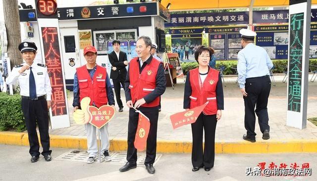 渭南政法网(记者 杨春波 陈冰娟 )5月15日上午,渭南市“周三文明交通礼让日,志愿服务我践行” 全市联动启动仪式举行。主会场设在渭南市中心广场,分会场设在各县(市、区),全市46个文明交通劝导志愿服务点同步启动,同步联动直播。渭南市委副书记王瑞峰宣布“渭南市周三文明交通礼让日 志愿服务我践行”活动正式启动,市委常委、宣传部部长王玉娥讲话。
