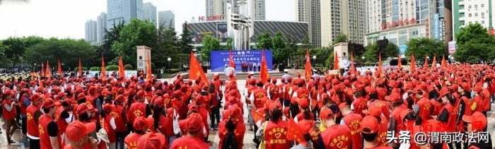 5月15日上午,“渭南市周三文明交通礼让日,志愿服务我践行” 全市联动启动仪式在渭南市中心广场举行。记者 杨春波 摄