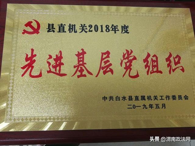 2019年5月15日,在白水县县直机关第十八次党的工作会议上,白水法院党总支被评为“先进基层党组织”。
