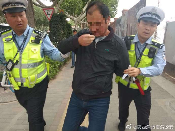 5月16日,渭南临渭公安巡警蜀黍在护学岗工作时,发现朝阳天桥下一位中年男子弃车逃跑,交警在后追赶。巡警田星星见状立即出击,配合交警进行追捕。
