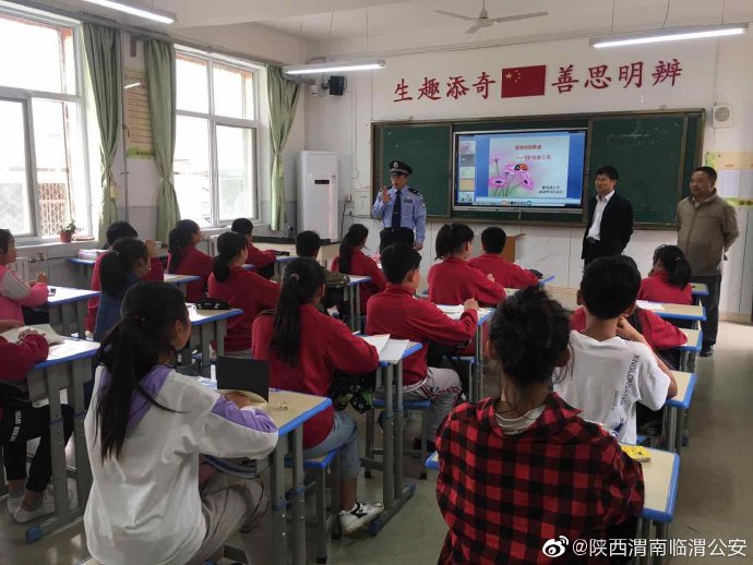 近日,渭南临渭公安民警走进解放路小学开展法制进校园宣传活动。