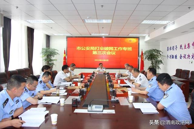 渭南政法网(市公安局讯)6月6日,渭南市公安局组织召开扫黑除恶专项斗争“打伞破网”工作第三次专班会议。会议由副市长、市公安局党委书记、局长、扫黑除恶专项斗争“打伞破网”领导专班组长杨建琦主持。市公安局党委副书记徐印祖,副局长、“扫黑办”主任张金龙,纪委书记张润民,政治部主任杜少平以及市局“打伞破网”领导专班成员刑侦支队支队长、“扫黑办”常务副主任野青,法制支队支队长白涛,纪委副书记、监察室主任王利勇、人事处处长姚怡、督察支队支队长杨万清参加了会议。