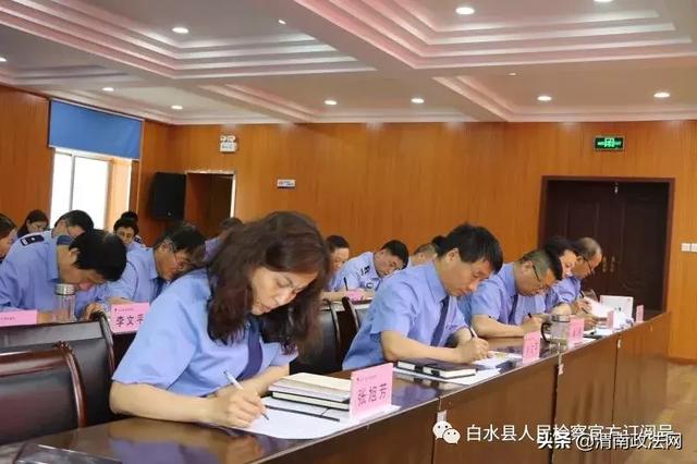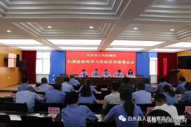 6月12日下午,白水县人民检察院召开扫黑除恶再学习再动员再部署会议,全体干警规范着装参加会议。