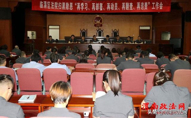 6月12日,临渭法院召开扫黑除恶专项斗争工作整改推进会,对扫黑除恶工作进行再学习、再部署、再动员、再翻查、再追责。