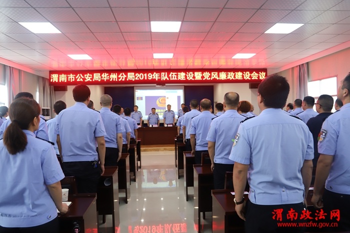 渭南政法网(通讯员 赵泽华)6月28日,渭南市公安局华州分局召开2019年队伍建设暨党风廉政建设工作会,会议全面总结回顾了2018年队伍建设和党风廉政建设工作,研究部署2019年队伍建设思路及重点工作。华州区政协副主席、公安局党委书记、局长师正利主持会议并讲话,局党委班子成员,各所、队室负责人及机关全体民警共计150余人参加会议。