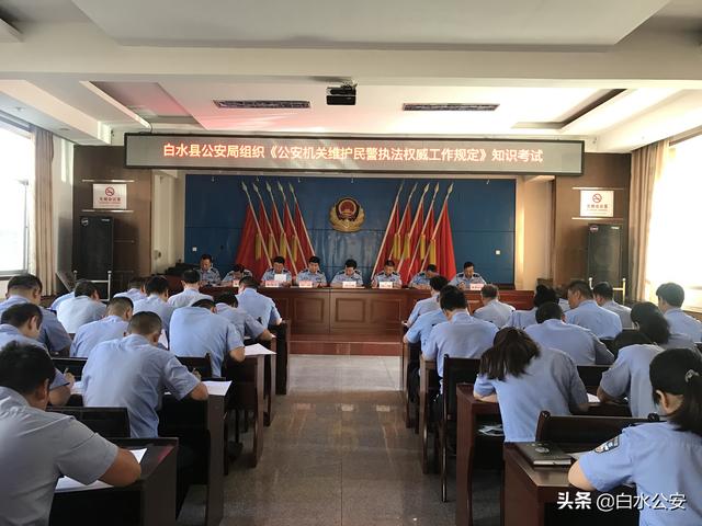 为了深入学习贯彻落实《规定》精神,提高对《规定》的知晓率和熟悉度,维护民警自身合法权益、激励广大民警尽职履职干事创业精神。根据市局安排,7月1日上午,白水县公安局组织开展《公安机关维护民警执法权威工作规定》知识考试,局领导班子成员、机关全体民警共计200余人参加本次考试,各基层所队在本单位分考场组织考试。