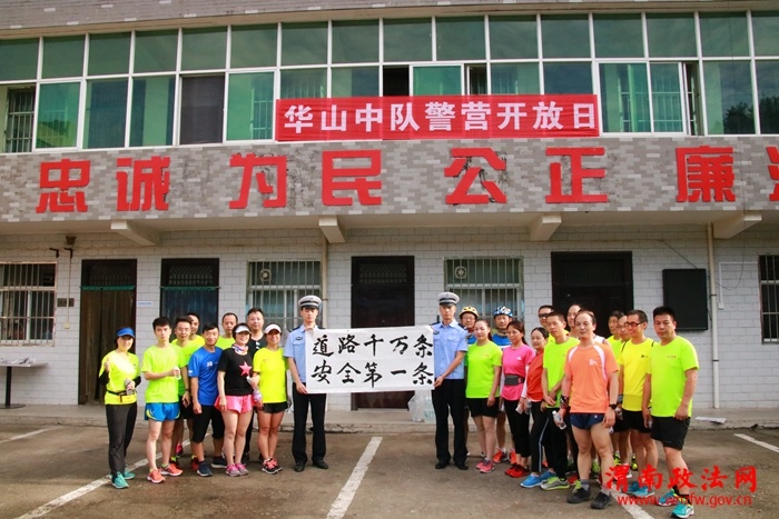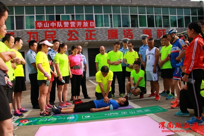 渭南政法网(通讯员 张峰)夏日清晨雨乍晴,华山警营迎嘉宾。6月29日上午,华阴交警大队华山中队积极邀请华山跑团成员走进警营,参观警营文化,体验酒驾查缉,学习急救常识,近距离感受交警风采,加强了警民之间的沟通交流。