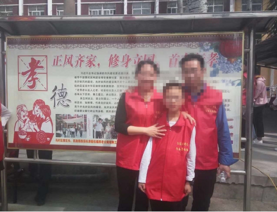 ▲ 受父母亲影响,小娜全家经常参加孝老公益活动。