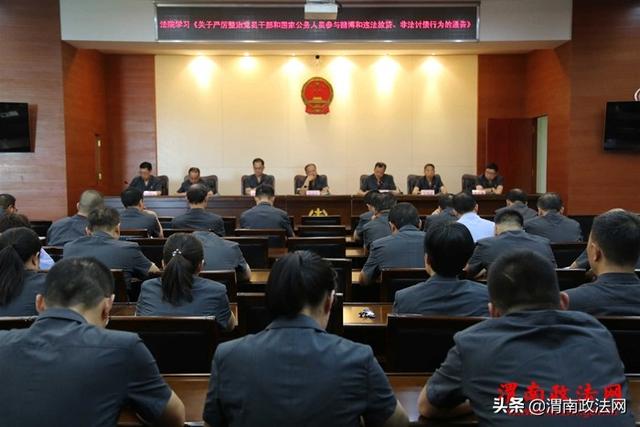 渭南政法网(通讯员 龚莉)7月15上午,华阴市人民法院组织全体干警召开关于《严厉整治党员干部和国家公职人员参与赌博和违法放贷、非法讨债行为》的专题会议,全体干警参加。党组书记、院长饶秦军出席会议。